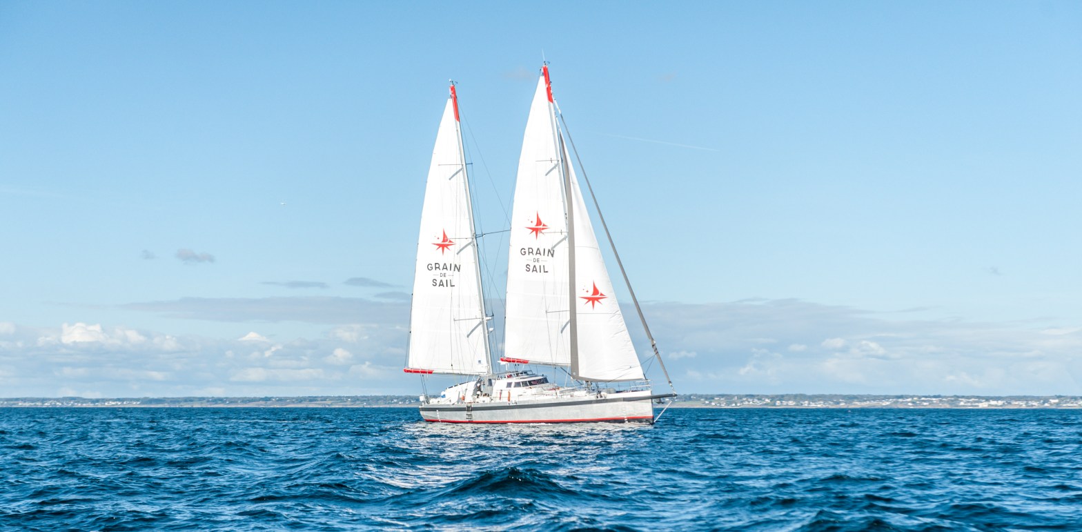 Bonjour ! Torréfacteur et chocolatier depuis 2013, Grain de Sail® exploite depuis 2020 son premier voilier cargo de 22m et 35 tonnes de capacité en cale. Le navire, enregistré au RIF (sous pavillon Français), permettra d’exporter des vins BIO français vers New-York puis ramènera des cacaos BIO et un peu de café vert d’Amérique Latine jusqu’à Morlaix, siège de l’entreprise. Nos cafés et chocolats sont produits en partenariat avec l’ESAT des Genêts d’Or en faisant travailler une vingtaine d’ouvriers en situation de handicap.