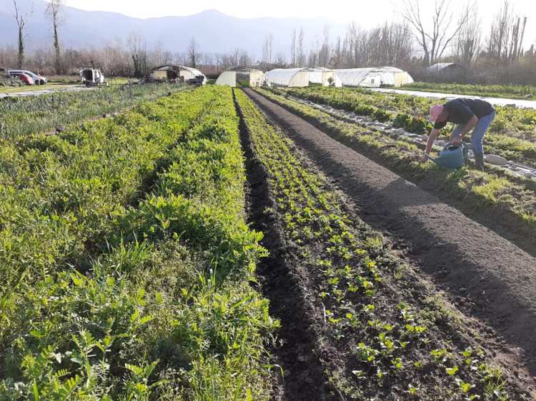 Je travaille encore en travail du sol classique avant l’implantation des cultures mais je m’intéresse et m’essaye cette année à ce qu’on appelle le « msv », maraîchage sur sol vivant, qui consiste en gros à cultiver sans travail du sol, sur un sol toujours couvert, et à nourrir le sol et la vie qui l’habite (insectes, bactéries, champignons) plutôt que les plantes.