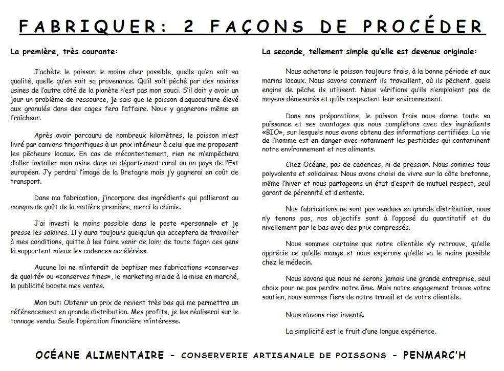 Dans le cadre d’une augmentation des tarifs des conserves Océane Alimentaire au 1er janvier 2022, l’équipe de Penmarc’h a souhaité mettre la lumière sur la différence entre deux façons de voir la fabrication et la commercialisation des produits de la mer.